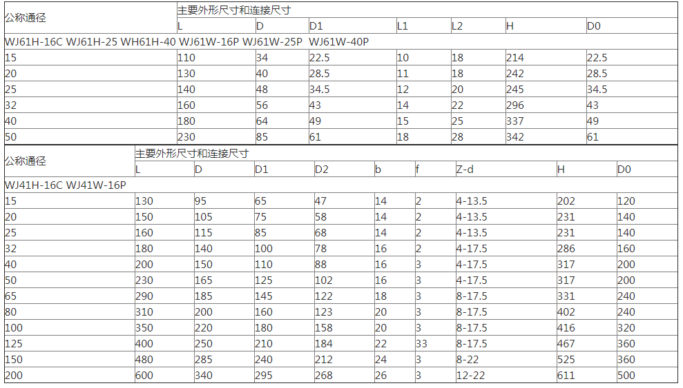 波紋管截止閥主要外形和連接尺寸: