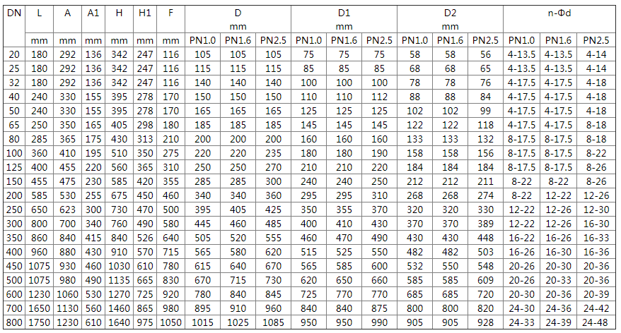 壓力等級:PN10、PN16、PN25隔膜式:DN20~450